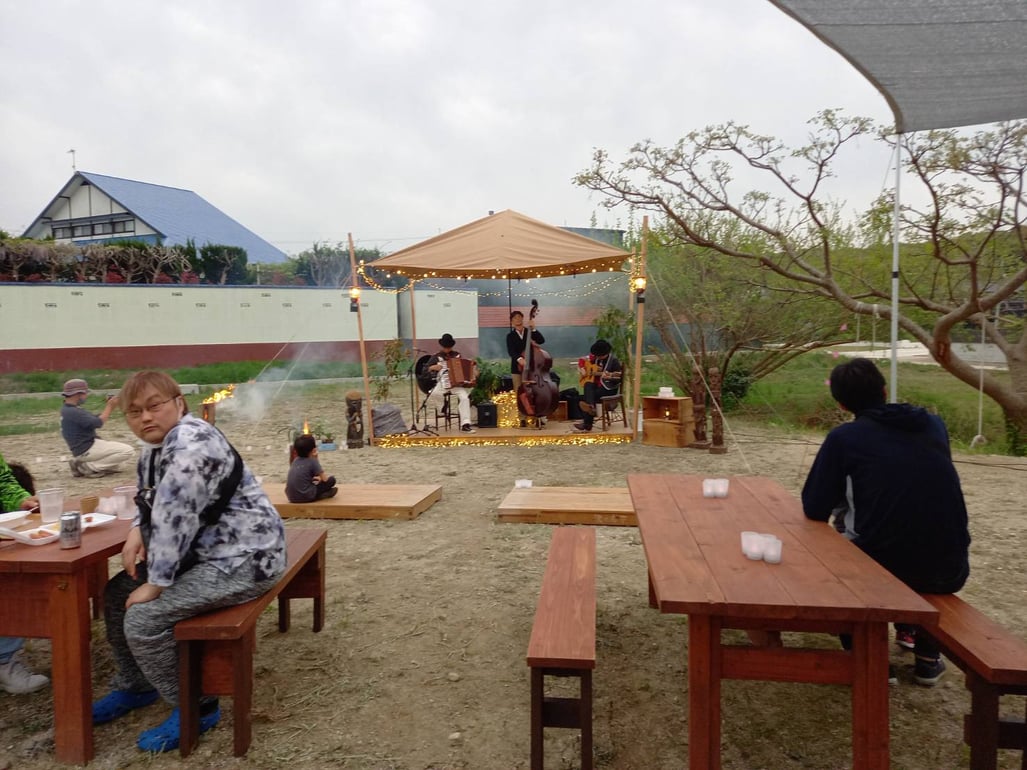 keyanzから歩いて10分足らずのところにある「レストランカフェ Bea Sun」で、今日はライブコンサート。アコーディオン、コントラバス、ギターが織りなす、アコースティックなシャンソンがとってもおしゃれ!