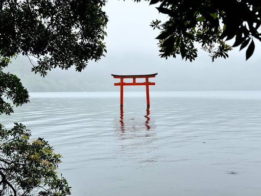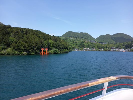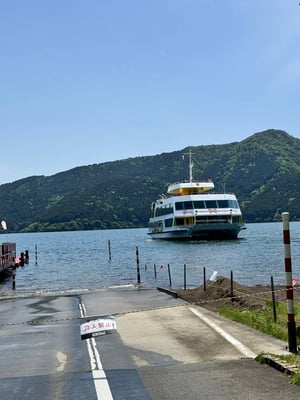 さらに雨にけぶる箱根神社にも行きました。龍神水はいかにもご利益がありそう・・・。いやいや今年は「お礼」だけです!!そして、やはり参拝後はおそば。美味しかったです。その翌日はうってかわって快晴!!なんで、もう一度箱根神社に行きました。いやいやだから「お礼」だけです。あまりにお天気がいいので遊覧船にも乗りましたが、これが最高に爽やかで気持ちが良かったです。芦ノ湖の遊覧船は前から有名ですが、これは今年2月に就航が始まった新しいタイプの遊覧船です。船内は綺麗な畳が敷かれていて、インバウンド方々に大人気でしたよ。