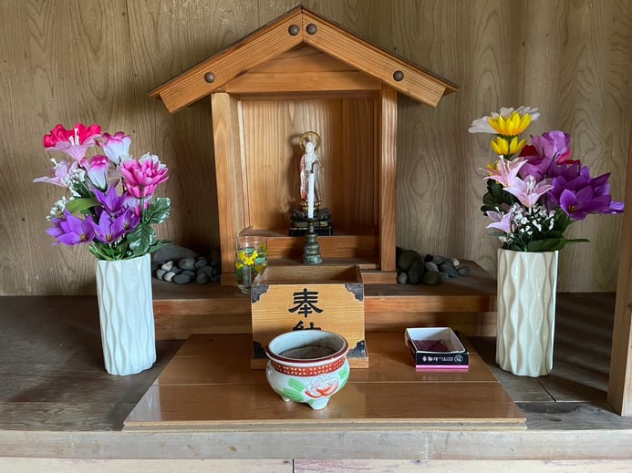 前にもブログに書いたようにケヤンズは隣組に入っていて、皆で交代で草刈りや海岸のお掃除をしていますが、この日、ホストは初めて一人で「お地蔵様」のお掃除をしました。これも順番に回ってきます。地元の方は皆「お地蔵様」と呼んでいるのですが、一般にイメージする道端でよく見かけるお地蔵様とは違っていて、このお地蔵さまにはきちんとおうちがあります。なので、まず、このおうちのお掃除から始まります。お地蔵様、とても高貴なお顔をなさっていますね。お掃除を終えるととてもありがたい気持ちがして幸せな気分になりました。いつも芥屋をお守り頂いてありがとうございます!!