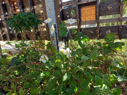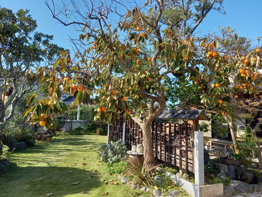 不如帰と秋明菊も柿の木も美しい。お庭もすっかり気に入りました。
