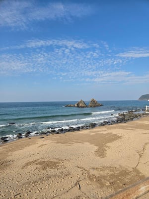一日目の海は美しく、二日目の早朝の時雨の海も良かったあ。